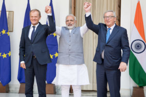 Jean-Claude Juncker, President of the EC and Federica Mogherini, High Representative of the Union for Foreign Affairs and Security Policy and Vice-President of the EC attend the EU-India Summit in New Delhi